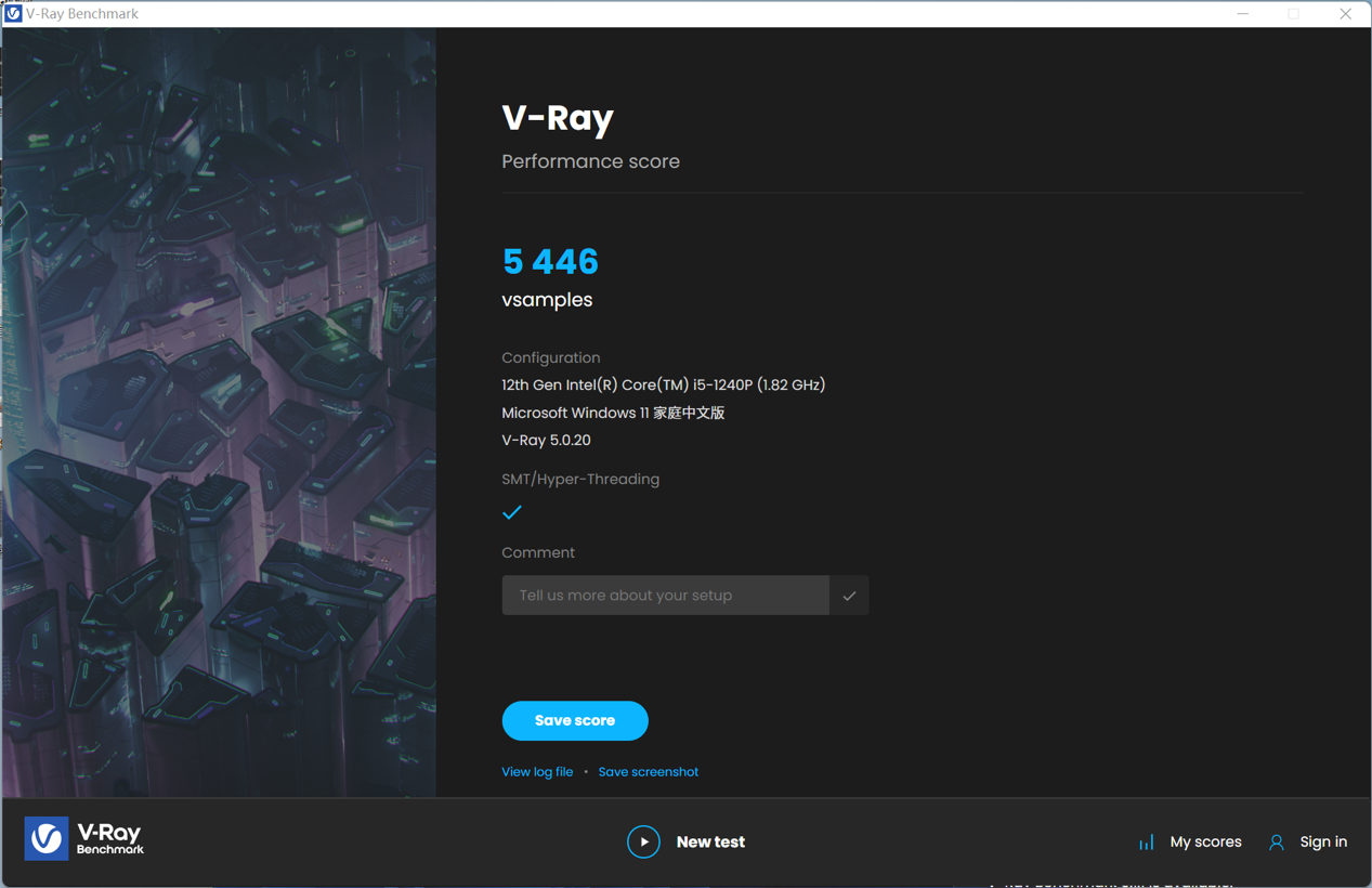 在另一个非常考验 CPU 性能的渲染工具 V-Ray 中,ThinkPad X1 Carbon 也跑出了 5446 分的成绩,所以做图渲染之类的生产力场景,它也能够胜任。