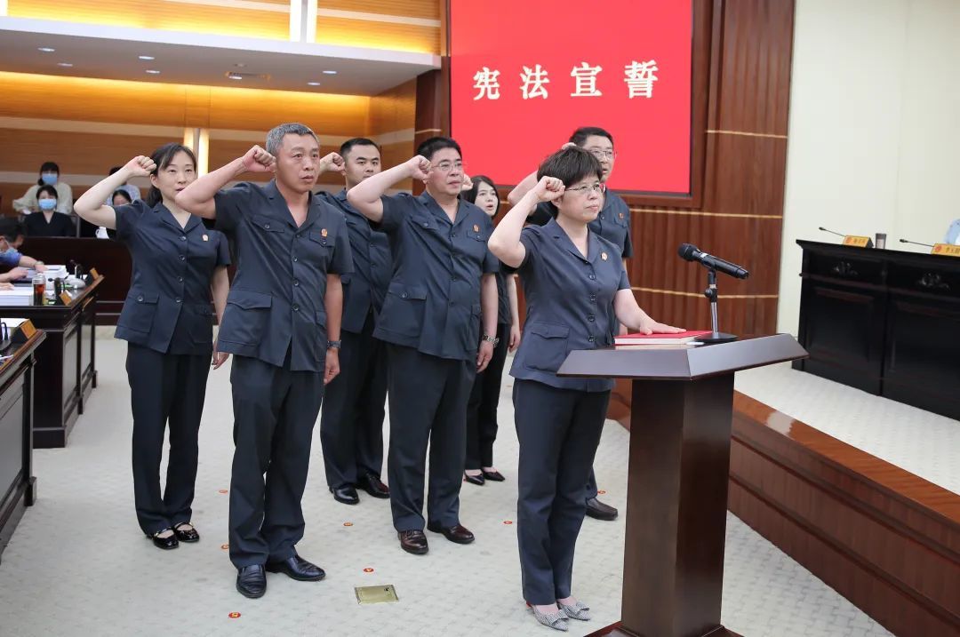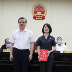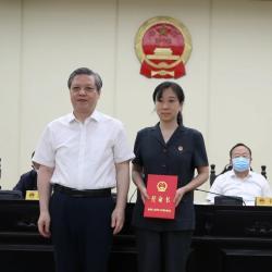 市人大常委会主任孔令俊为汤咏梅等7名同志颁发任命书。