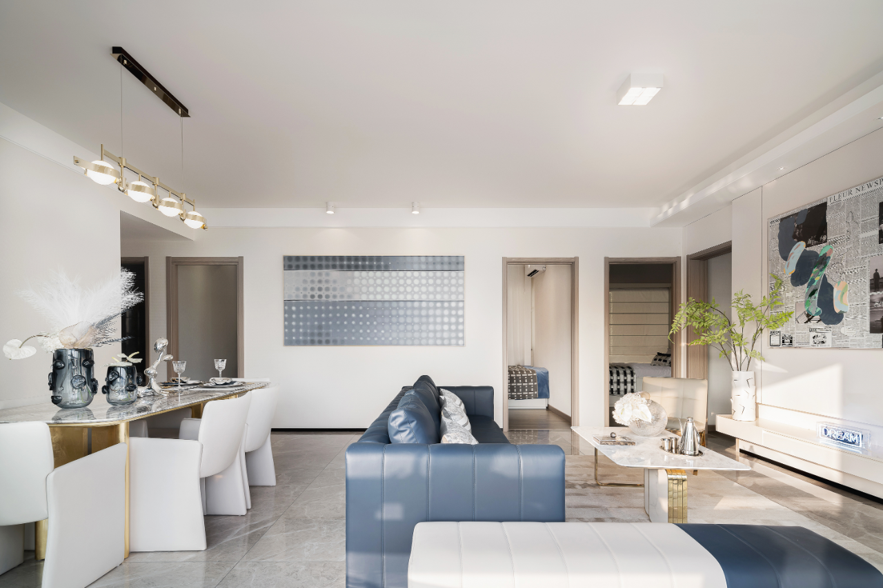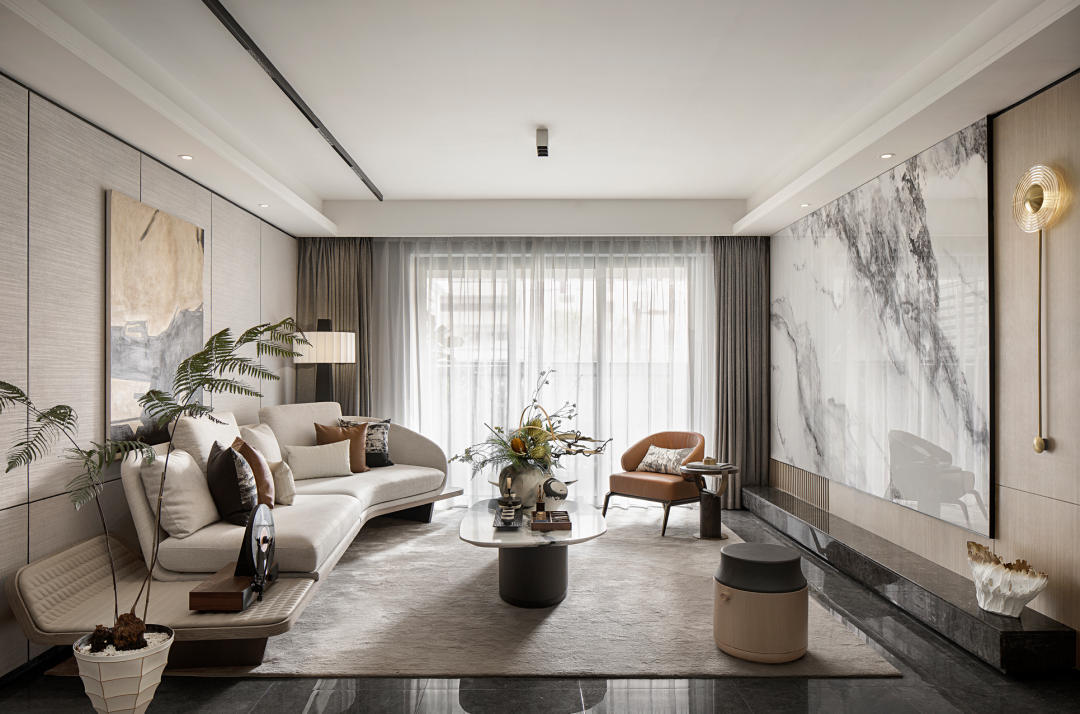 最后一个办法是购买亮面家具。表面光泽的物体更够帮助自然光在空间内进行反射,常见的有大理石电视墙,但也要注意家具的大小也会阻碍光线的流动。其次就是软装上采用长虹玻璃、亚克力、藤编等能够透光的装饰。