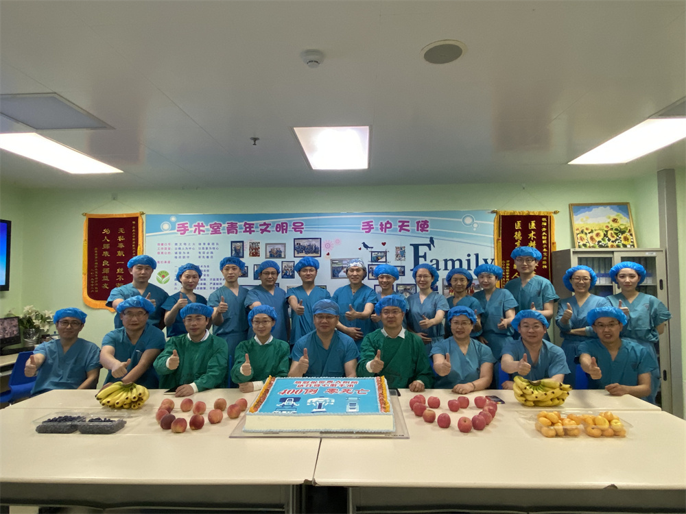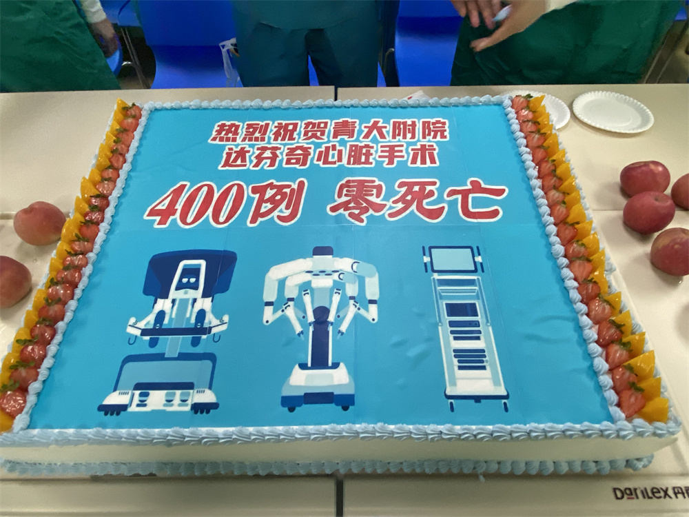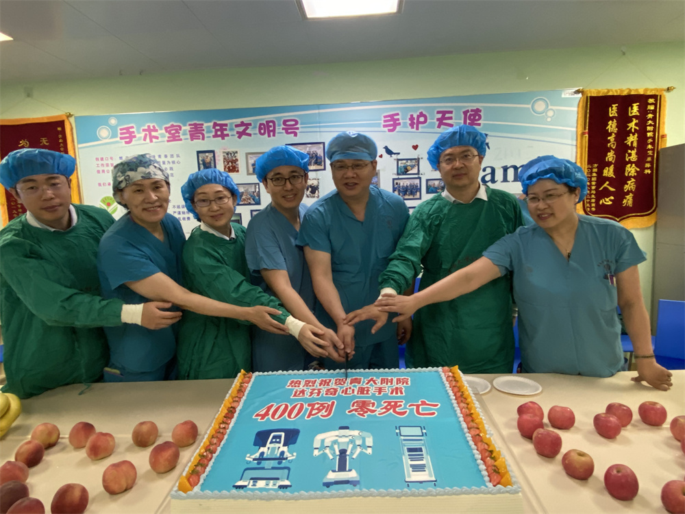 7月1日上午,青大附院杨苏民教授心脏机器人手术团队,7年成功完成411例达芬奇心脏手术,团队举行了简短的庆功仪式,便匆匆的又上了手术台,正在准备着第411台手术。