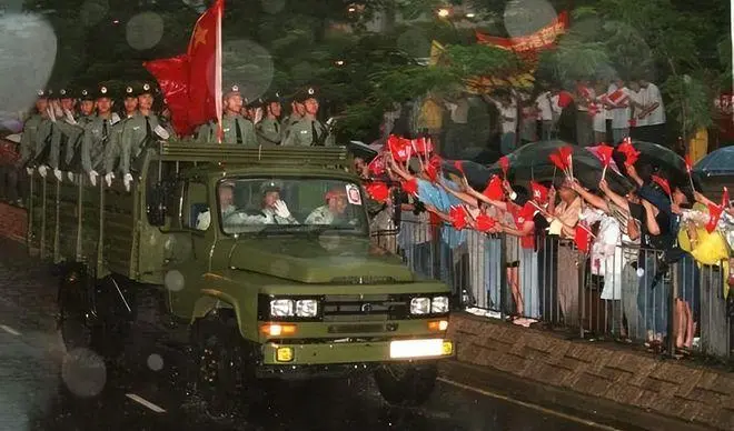 1997年6月30日午夜至7月1日凌晨,中英两国政府香港政权交接仪式在香港会议展览中心新翼举行,中国人民解放军驻港部队同时抵达香港各营区执行有效防务。