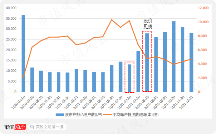 但随后不久,也就是2021年7月9日,其股东人数小幅增加至1.4万户。而当股价开启直线上涨前,股东户数再次下降近10%,并在2021年7月20日缩减至1.29万户。