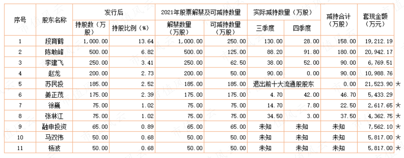 (注:上表中套现金额标星号为测算金额,与实际成交金额或有一定出入)