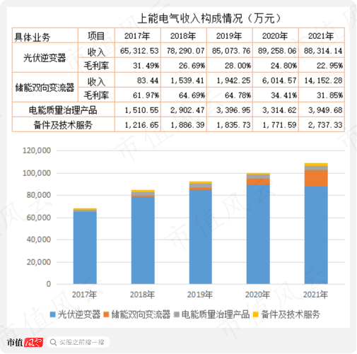 但不论是贡献绝大部分收入的光伏逆变器,还是次之的储能双向变流器,他们的毛利率都明显下滑。