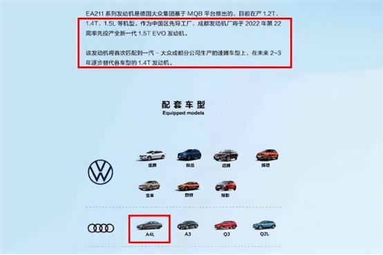 最近,网络上曝光了一汽-大众将推出一款全新的1.5T发动机。其归属于MQB平台的EA211系列,代号为1.5T EVO。按照图片资料的规划,新发动机将会在2022年第22周投产,并在未来2-3年替代现有的EA211 1.4T发动机。包括搭载的速腾、探岳、迈腾、探歌等等车型,同时还有奥迪的A4L、A3、Q3以及Q2L。
