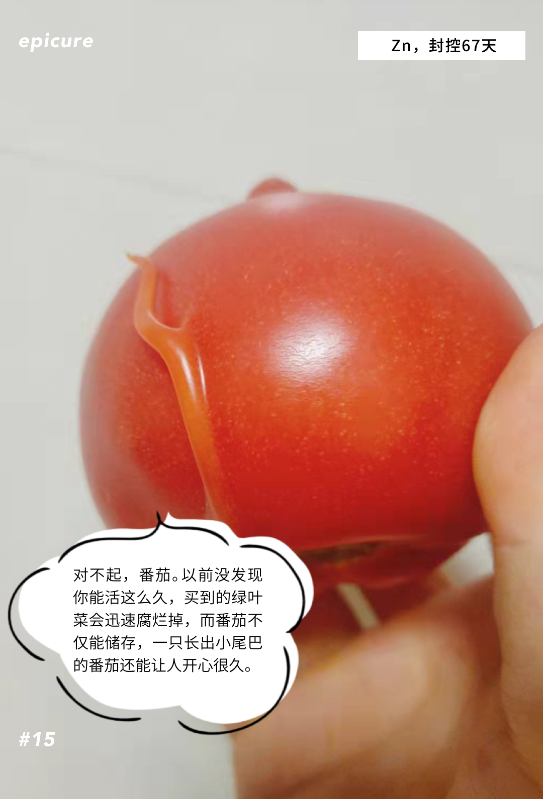 对不起,番茄。以前没发现你能活这么久,买到的绿叶菜会迅速腐烂掉,而番茄不仅能储存,一只长出小尾巴的番茄还能让人开心很久。