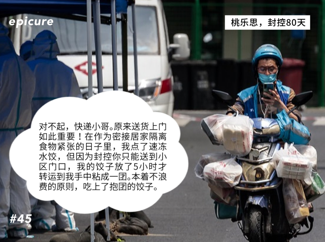 对不起,快递小哥。原来送货上门如此重要!在作为密接居家隔离食物紧张的日子里,我点了速冻水饺,但因为封控你只能送到小区门口,我的饺子放了5小时才转运到我手中粘成一团。本着不浪费的原则,吃上了抱团的饺子。