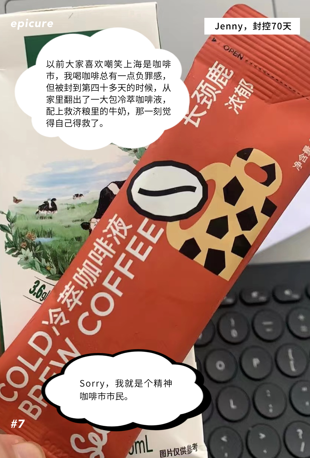 以前大家喜欢嘲笑上海是咖啡市,我喝咖啡总有一点负罪感,但被封到第四十多天的时候,从家里翻出了一大包冷萃咖啡液,配上救济粮里的牛奶,那一刻觉得自己得救了。