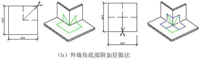 ◆阴阳角附加层做法如下