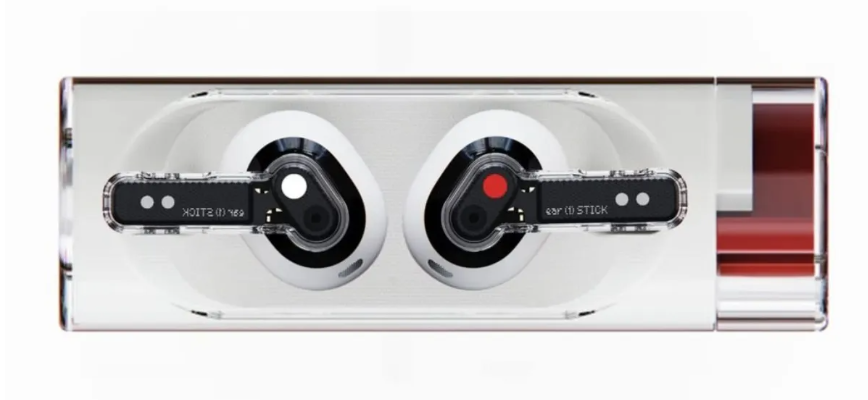 目前尚不清楚 Nothing Ear (1) Stick 相比 Nothing Ear (1) 的硬件升级,不过从渲染图可以看到,新款的耳机外壳也有一半部分为全透明设计,可以清晰地看到内部的降噪麦克风、滤网、PCBA 电路板。