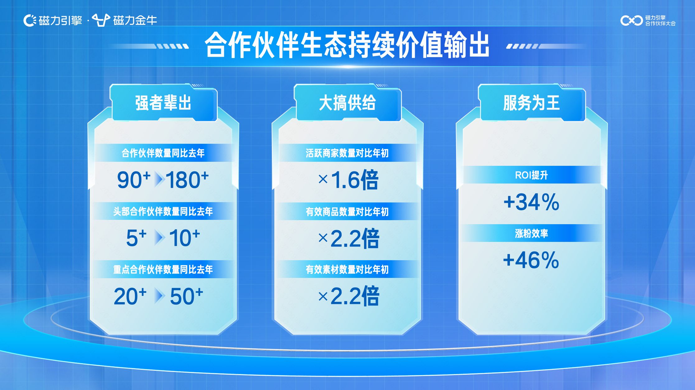 据了解,磁力金牛还推出了“一套星级体系”、“一个赋能计划”、“一个服务平台”三重举措,合力为服务商升级保驾护航。