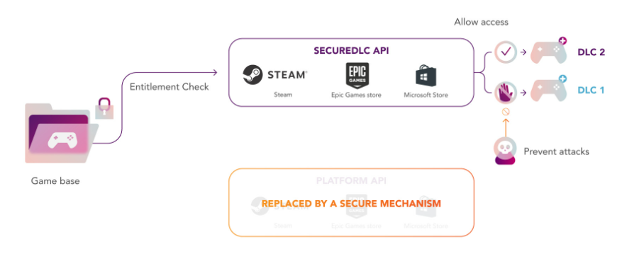 据介绍,目前,在 Steam 和 Epic 等流行游戏平台上绕过 DLC 保护是非常容易的,而 Denuvo SecureDLC 就解决了这一问题。