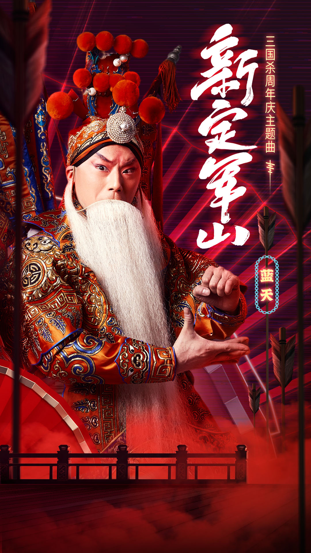 7月9日晚8点,三国杀周年庆主题曲《新定军山》即将全网首发。亿万爱,聚好玩!这个暑假听国粹京剧与现代音乐激情碰撞,唱出别样魅力!