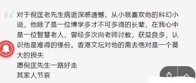 悲痛!香港文坛“巨星”倪匡因病离世,刘德华第一时间发文悼念——引言。