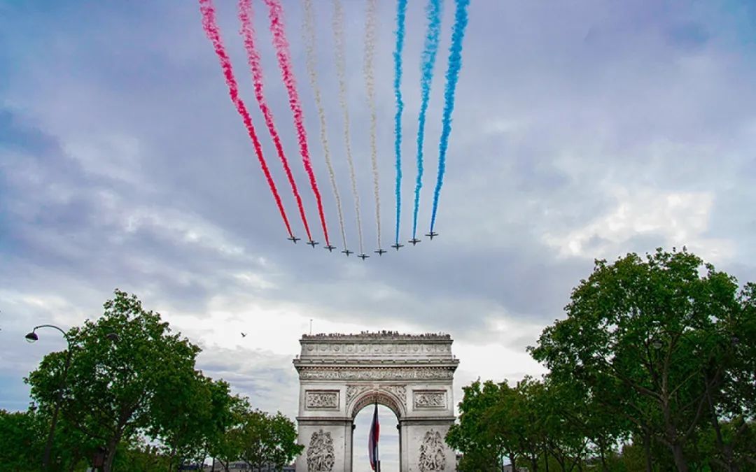 活动:每年7月14日早上,会在巴黎举行国庆阅兵仪式,所有参与阅兵的军队由凯旋门出发,途经香榭丽舍大道,抵达协和广场,接受法国总统检阅。
