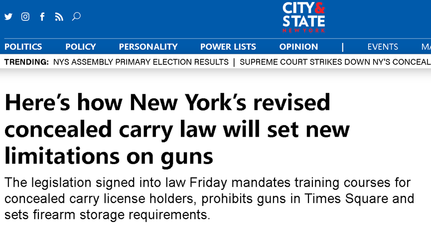 比如,这些法律直接设立了一个 “敏感”公共场所名单,包括纽约的地标“时代广场”,以及政府建筑、学校、医疗机构、宗教场所和公共交通,然后彻底禁止人们在这些地方携带枪支。