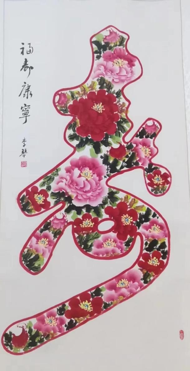 此幅作品主题构思巧妙鲜明,《福寿康宁》用牡丹画像形字,“寿”。其表达形式独具,风格独特,馈赠与收藏,彰显品位与价值。