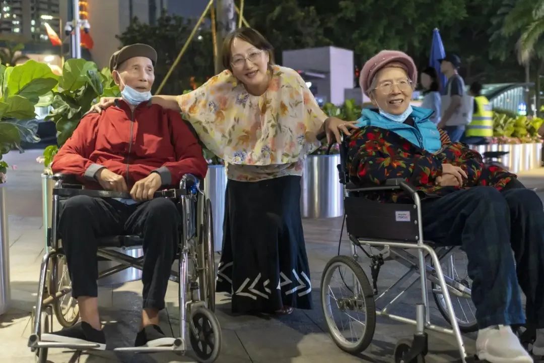 为了在弹琴的同时也照顾家人,人们还常常看到她把患阿尔茨海默症的父亲和母亲带到华强北来遛弯,一起听街头的音乐会。