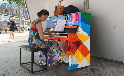 不是只有“闲人”需要钢琴。小尹是在附近上班的一位眼科医生,常常会顶着正午的烈日出来弹上几首。