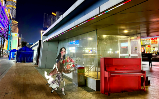但如今,在华强北步行街中摆放的免费钢琴,形成了一个更奇特的存在:它容纳了每一个需要慰藉的打工人、失意的艺术家和从现实出逃的流浪者。
