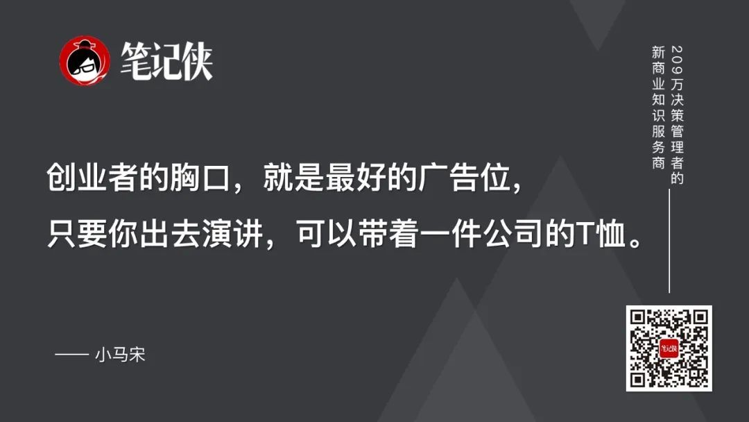 创业者的胸口,就是最好的广告位,只要你出去演讲,可以带着一件公司的T恤。