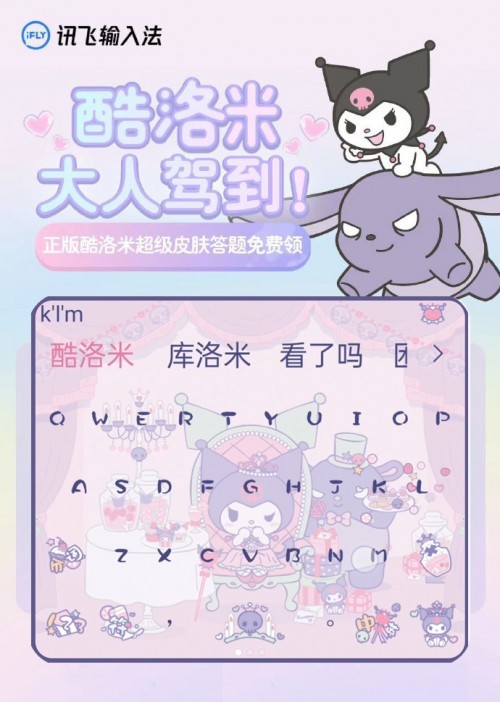 随着人工智能技术的不断发展和迈向成熟,如今输入法的功能从多元化走向功能化乃至智能化,在此基础上构建起内容生态。此前,讯飞输入法已在键盘皮肤领域大力深耕,不但拥有风格多变的颜皮肤,还吸纳知名设计师的作品,旨在提升输入法的“颜值”。此次,讯飞输入法联名三丽鸥推出正版酷洛米超级皮肤,无论对用户体验的升级,还是对IP形象的拓展,都将影响深远。