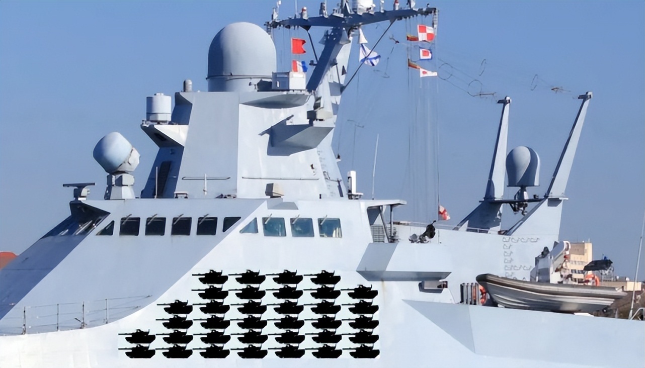 在本次冲突中,俄军动不动就把“口径-NK”巡航导弹拿出来充门面。虽然俄军没有像航空母舰那样的大型战舰,但是,也别小看了俄罗斯海军的战斗力。“口径-NK”巡航导弹正是俄军的秘密武器,它不仅可以打击乌军的海上目标,更是可以对陆地上坦克进行摧毁。隶属于俄罗斯海军的一艘22160型巡逻舰,以其只有千吨排水量的体格,居然多次发射“口径-NK”巡航导弹,击毁了乌克兰陆军的35辆主战坦克,其战斗力可见一斑。俄罗斯海军还把它击毁的坦克数量,刷到了舰体上。