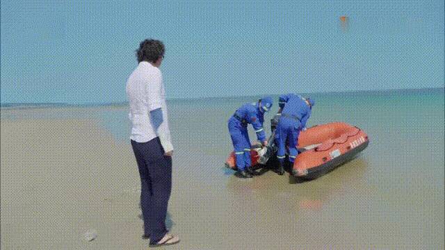 说出“这个家庭非常温暖,可代价非常大”之后,一个人跑去和海岸远处的蓝天救援队搭话,如果不是何炅老远把他往回拉,他就跟着人家上船出海了。
