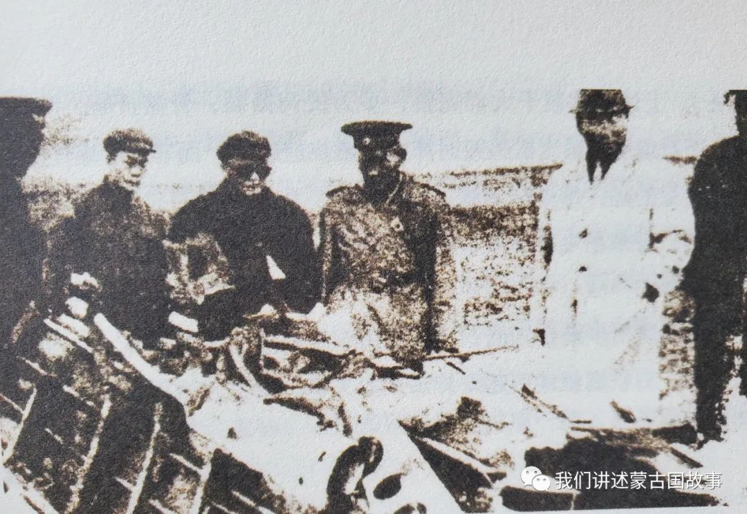 之后,按照蒙古习俗,在9具棺木上横铺整幅的红布,再覆上稍窄的黑布。许大使、高陶布和桑加上校分别执锨填土,接着由老孙、老沈和我再执锹填土,最后由蒙古士兵铲土封埋。