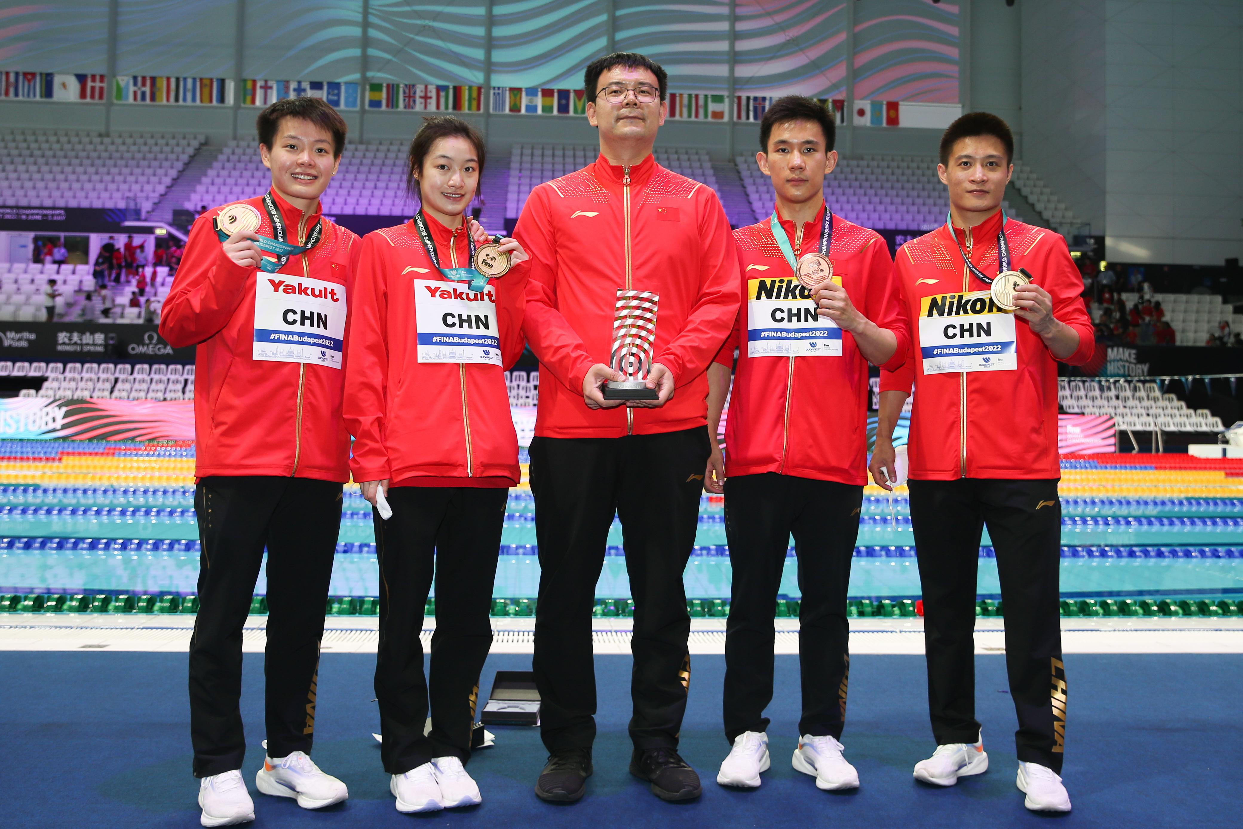 当日,在匈牙利布达佩斯举行的2022年世界游泳锦标赛跳水项目比赛全部结束,中国队获最佳跳水队奖杯。