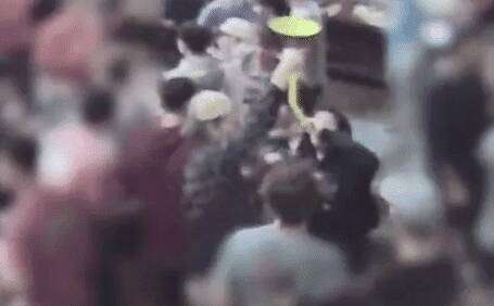 ▲该校宿舍监控拍下的,一群赤裸上身的白人男孩蒙眼搭肩,列队行走
