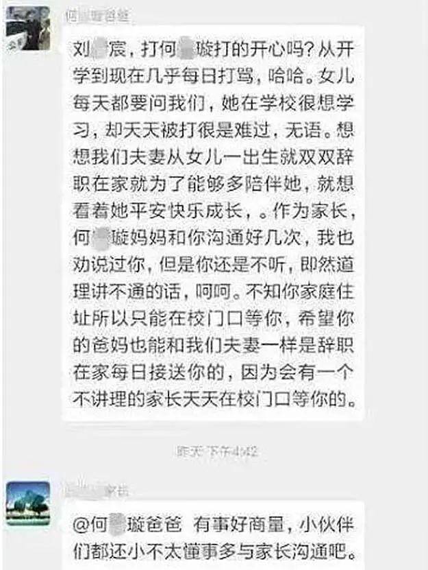2.要问清楚是否还有其他孩子也被欺凌。如果霸凌者不是针对自己孩子的个人事件,联系其他受害人家长,造成群体事件,可以更好地向学校施压。