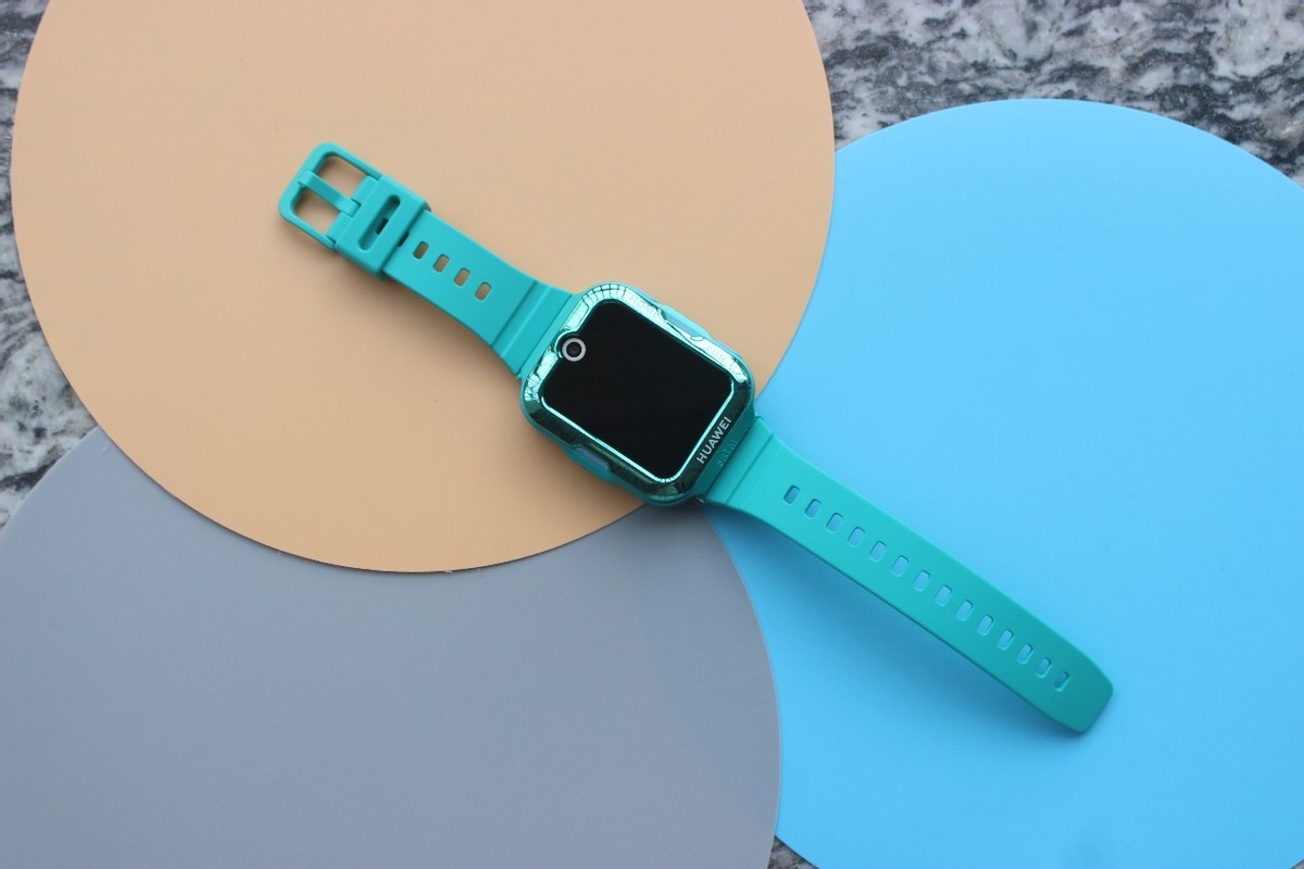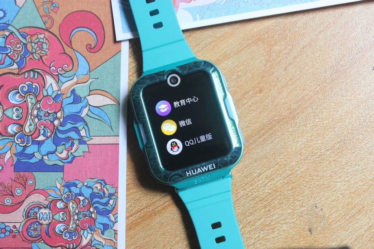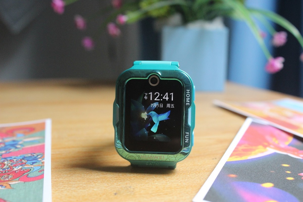 我手上这一款是“深海奇幻款”以青色作为表壳和表带的主色调,深度融合《深海》的神秘海洋元素,在表壳处雕刻细腻婉转的纹路,就像朵朵浪花在缓缓滚动,整机的颜值非常有特色,当我家小孩第一眼看到华为儿童手表 4 Pro新款的时候甚至发出了“哇”的叫声,心中喜悦流露无遗。