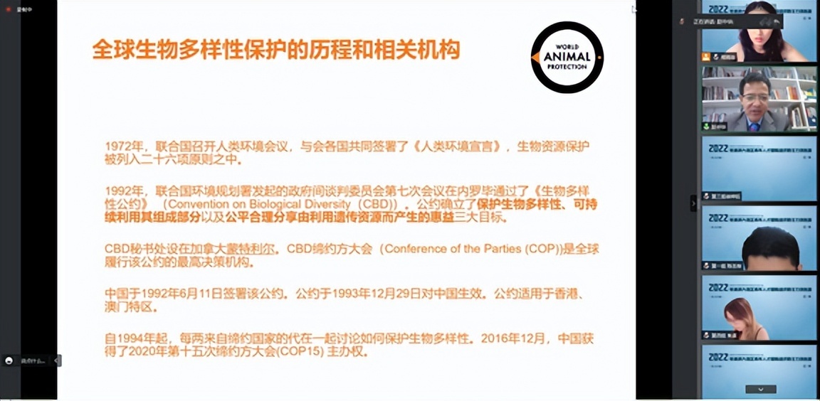6月30日,世界动物保护协会应邀为粤港澳大湾区青年人才训练营进行培训,该培训系教育部港澳台办“万人计划”项目之一,旨在促进粤港澳大湾区高校青年的交流。世界动物保护协会首席代表赵中华向青年学生代表进行了热情洋溢的讲解,介绍了生物多样性及其内涵、历史和重要意义。