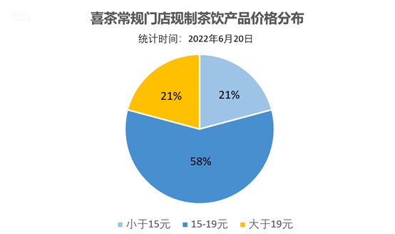 统计数据表明,喜茶常规门店菜单的现制饮品产品中,19元以下产品占比已近8成,15元内产品占比超2成。喜茶延续料真价实的产品策略,短时间内再次推出紫苏·粉桃饮、多肉杏运桃等多款15元产品,以实惠的价格和优秀的品质,持续呈现最当季的鲜果风味。