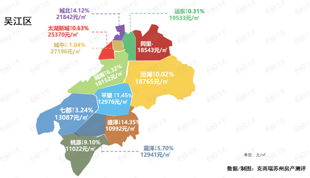 据CRIC苏州机构数据,目前吴江太湖新城的新房均价约25370元/㎡(2022年6月最新版块价格),是目前吴江区新房均价第二高的版块。