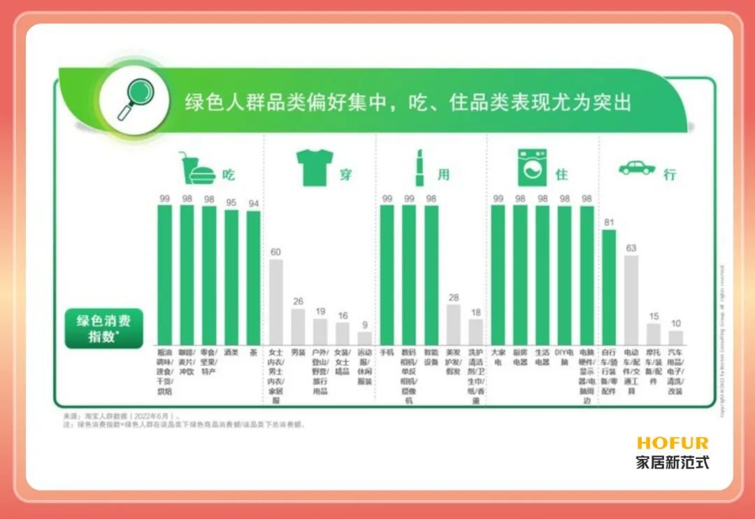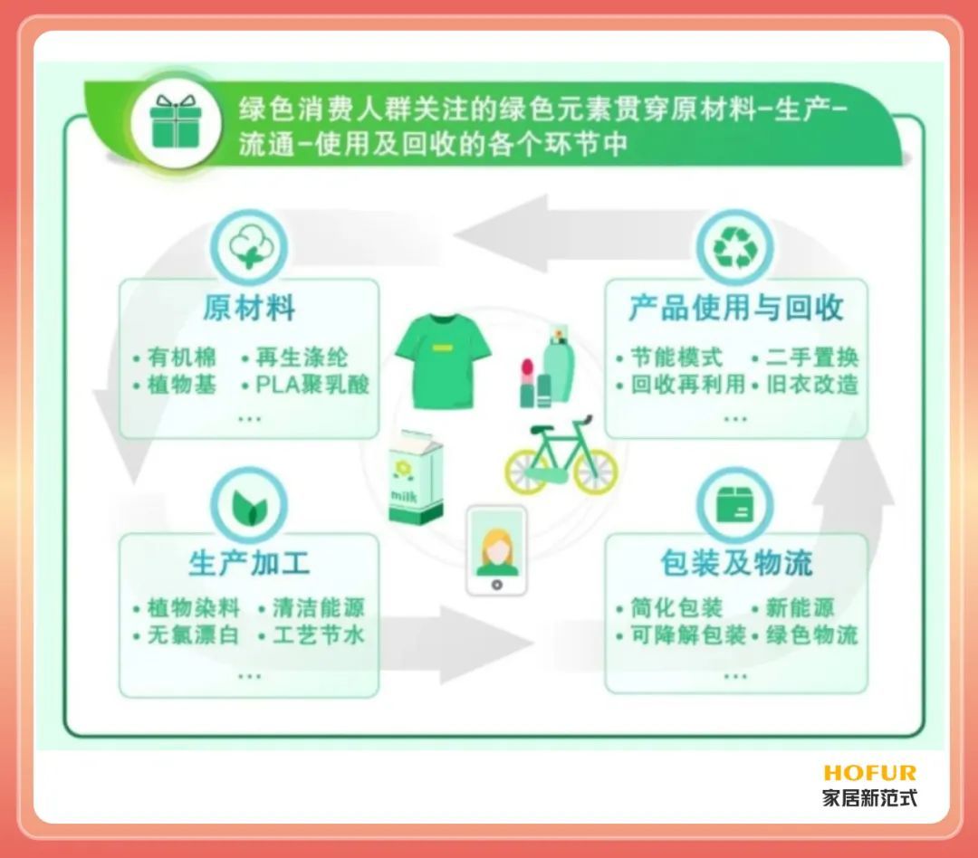 而绿色消费人群则是指在“吃穿住用行”五大生活场景中,将“绿色元素”贯穿在商品流通各环节中的消费者,以“住”这一场景为例,绿色消费者往往更关注家电的能耗,家装的环保性等。