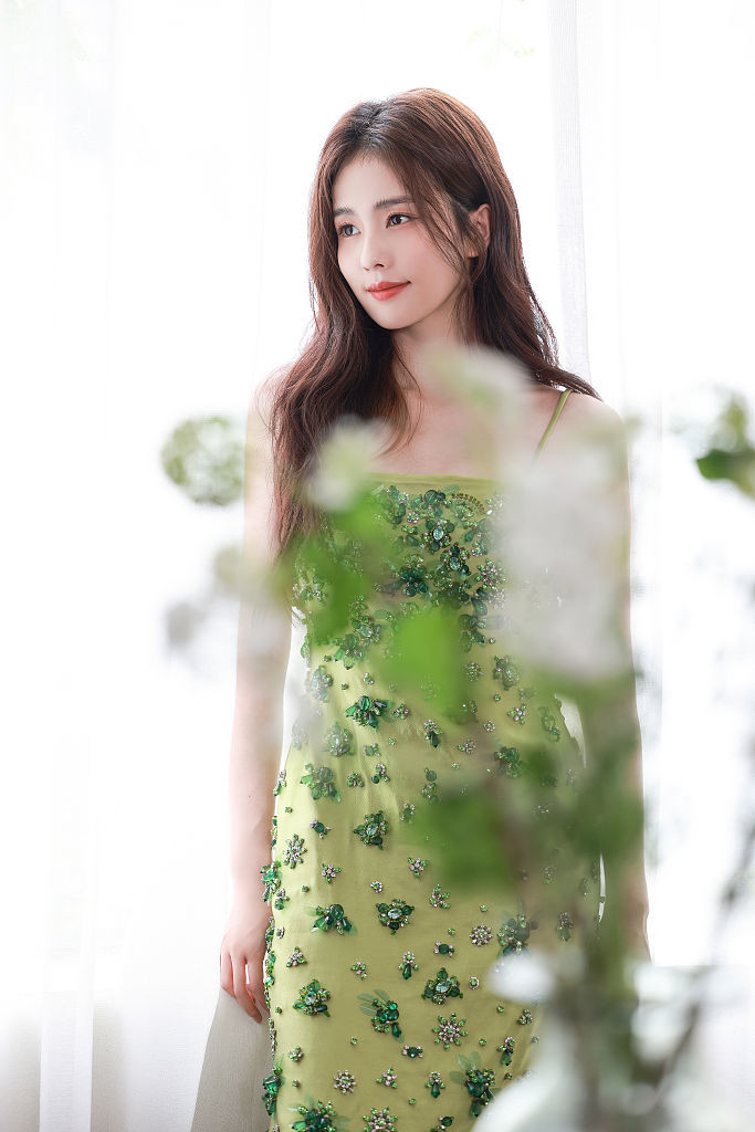 2022年7月4日,欢娱影视发布了一组白鹿绿色缀珠吊带裙写真。
