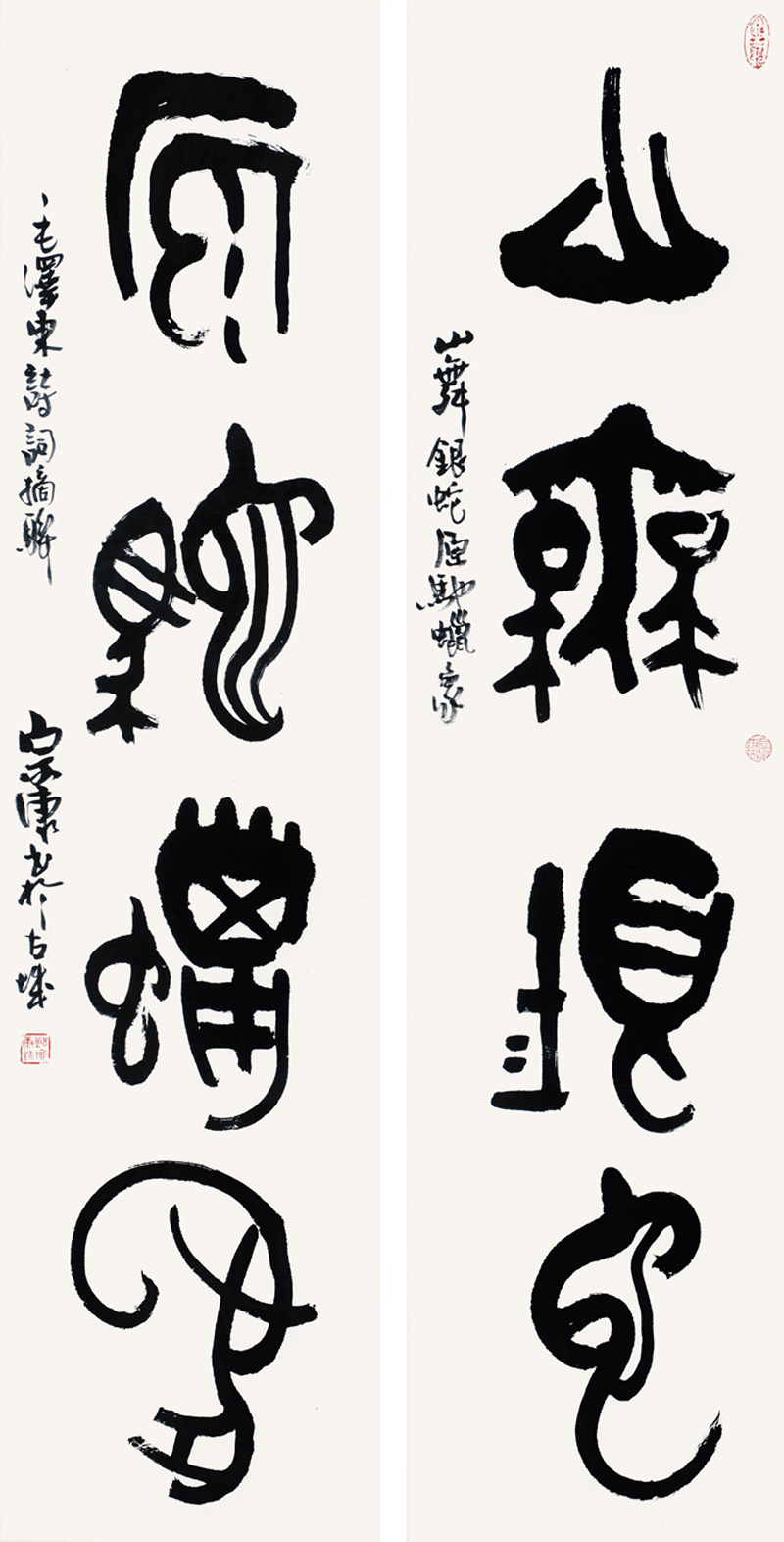 领导人诗词摘联《山舞银蛇 原驰蜡象》138cm×34cm×2