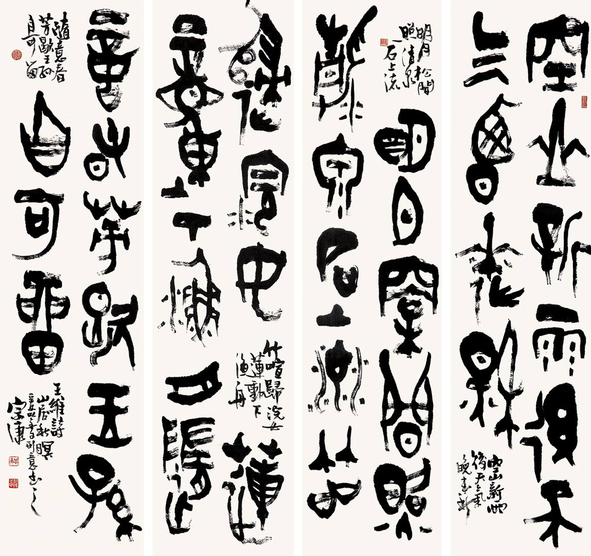 王维诗《山居秋暝》水墨纸本 138×69cm×4