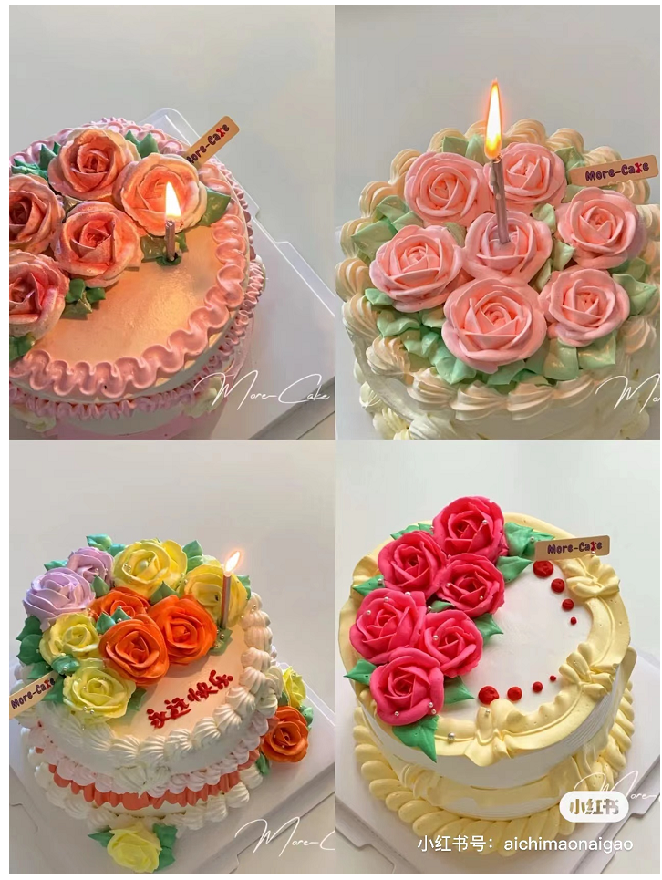 今后咱们订蛋糕的时候可以选择自己喜欢的裱花造型,并跟店家问清楚是哪种奶油做。