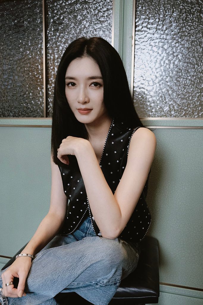 2022年7月4日,江疏影发布一组写真,她穿马甲搭牛仔裤示范职场干练穿搭。
