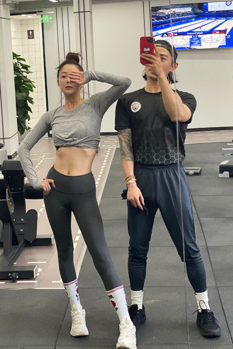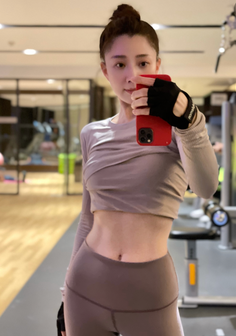 这张照片是殷桃去年发布的健身照片,这个时候殷桃的马甲线就已经很明显了,但脸还是有点肉肉的,但是显得少女感十足,从2021年到2022年可以看出殷桃的身材有着明显的变化。
