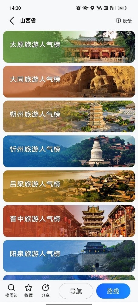 山西一键智慧游专区,包含了全省总计11个地级市旅游人气榜、2.5万个出游目的地资源,榜单所有有趣、好玩、热门的景区景点,可以看景区风光、实时热度、网友评价,还可一键预约购票。