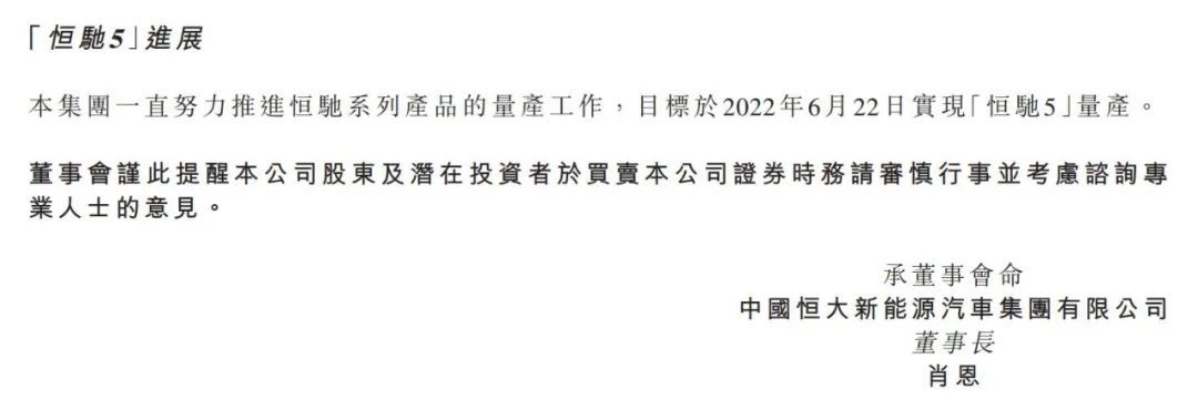 恒大汽车曾一口气发布9款,引起轰动。今年3月的公告里,恒大汽车表示,一直在努力推进恒驰系列产品的量产工作,2022年6月22日实现“恒驰5”量产,它并未提及其它车型。