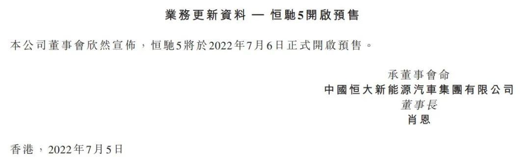 今年3月,刘永灼宣布,恒驰5各项工作进展顺利,预售即将开启。4个月后,恒大汽车正式确定,于7月6日开启预售。