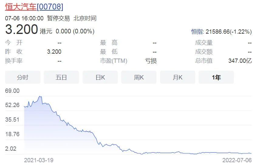 鲜花着锦时刻,没有生产出一辆车的恒大汽车,股价一度超70港元,市值膨胀至6700多亿港元。后续,恒大汽车陷入风波,股价震荡下行,如今只剩3.2港元。