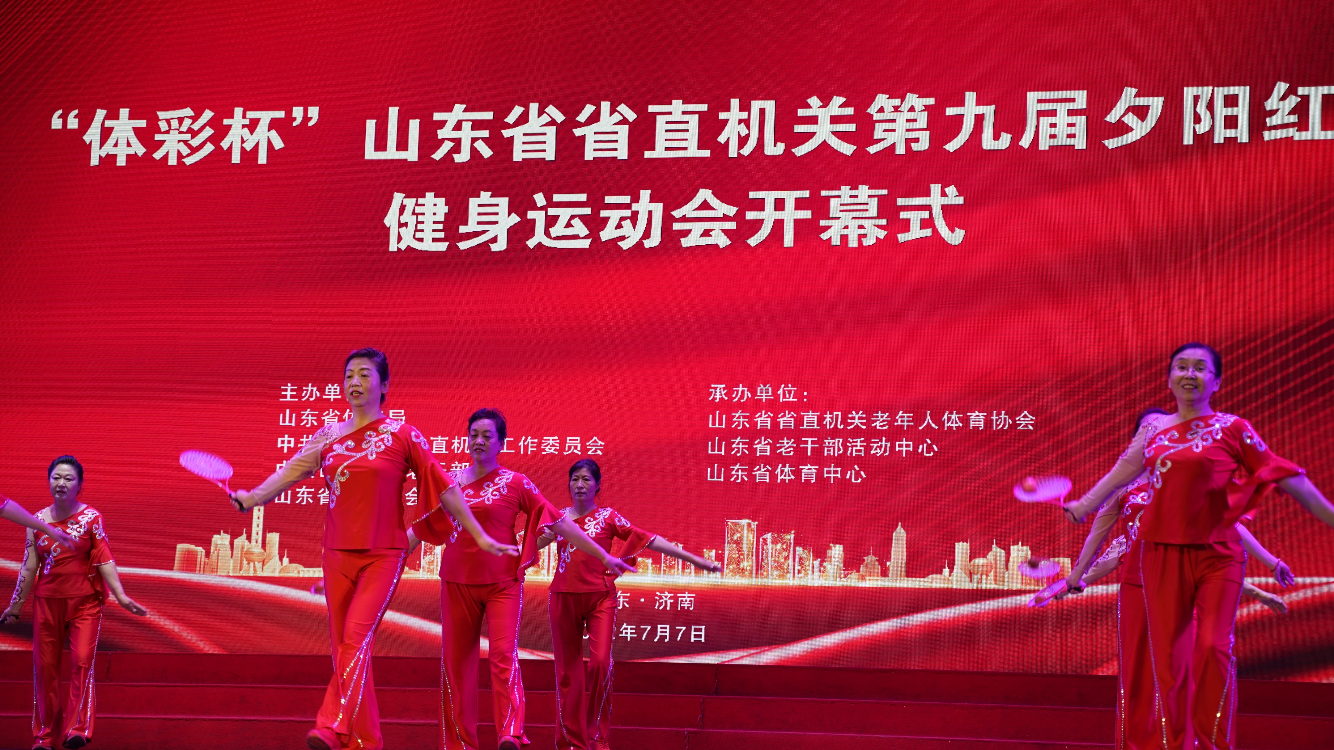 7月7日,“体彩杯”山东省省直机关第九届夕阳红健身运动会在省老干部活动中心开幕。省体育局党组副书记、省体育总会专职常务副主席乔云萍,省委省直机关工委副书记王树山,省委老干部局副局长牛宝文,省老干部活动中心党委书记张鹏远,省体育总会秘书处处长孙照亮等出席开幕式。