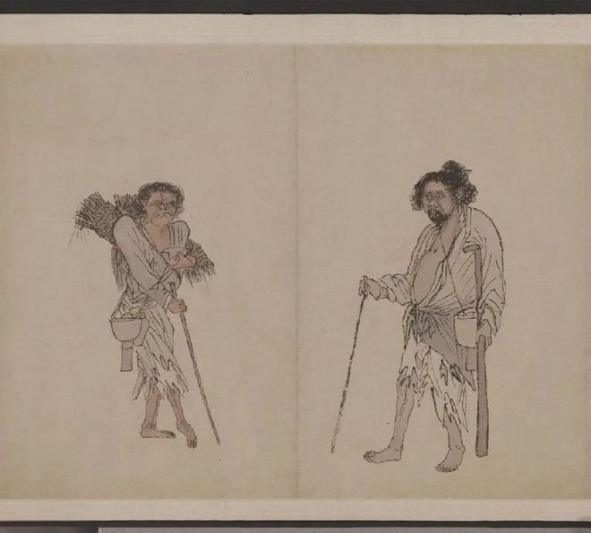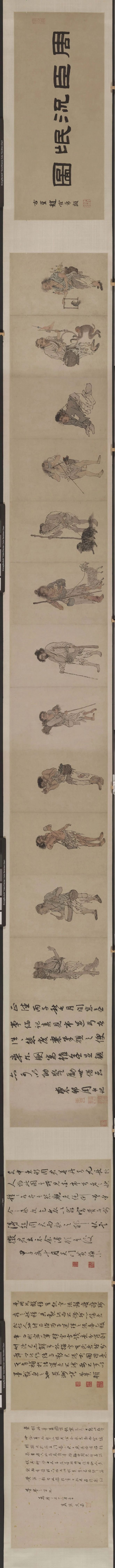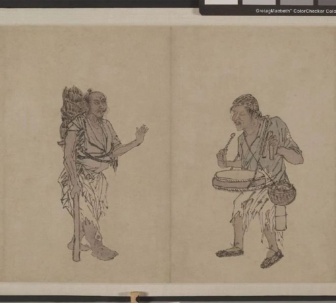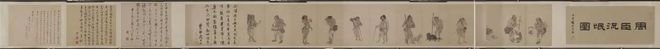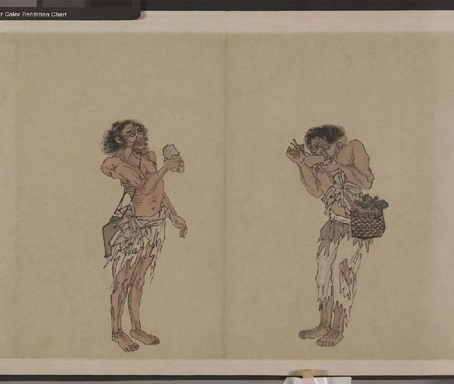 此卷共绘人物12人,形态各异,或身背锣鼓,或手牵小动物,皆衣衫褴褛。作画背景是明武宗朱厚照统治时期,所谓的流氓多是因战争流离失所而逃难的百姓。也许他们有着正当的职业,稳定地收入,但战争降临后,一切都化为了乌有。逃难的人们为了生计想方设法赚钱,有能力的可以凭借自己的能力勉强果腹,没有能力的人连乞丐都不如。