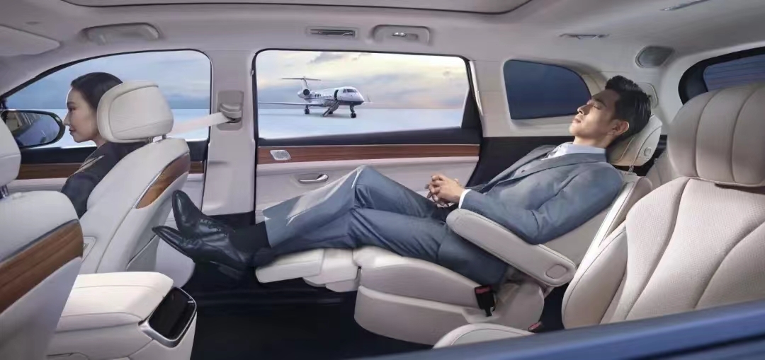 不得不提的是问界M7的一大亮点,采用了业界首个商用零重力座椅,即副驾驶后面的那张椅子,支持电动左右、前后的移动,坐垫角度也可调,只需一键就能放倒至比较舒适的状态,这在同级车中确实是个创新配置。